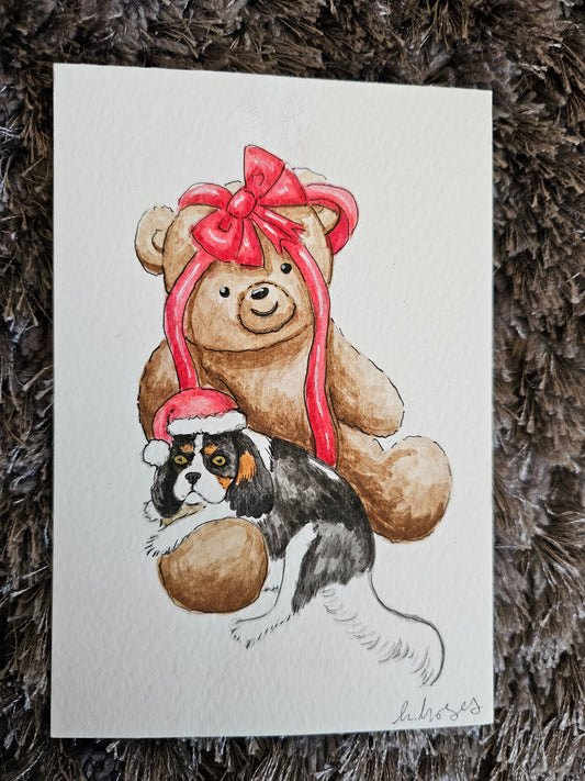 Christmas Cavaliers A6 Watercolour Original Artwork